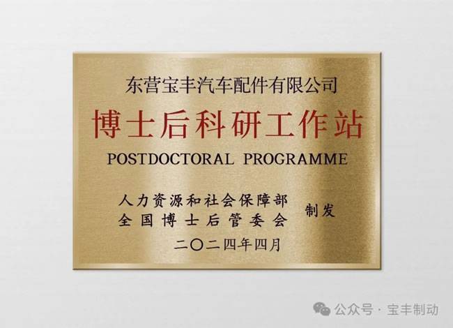 近日,根据全国博士后管理委员会办公室公布了2023年国家级博士后科研工作站名单,东营宝丰汽车配件有限公司成功获批设立国家级博士后科研工作站。东营宝丰汽车配件有限公司,作为一家致力于汽车制动片、制动钳关键零部件研发与制造的高新技术企业,多年来深耕技术创新,持续优化产品结构,不断提升核心竞争力。此次获批博士后科研工作站,是对公司长期以来坚持科技创新、注重人才培养战略的高度认可。