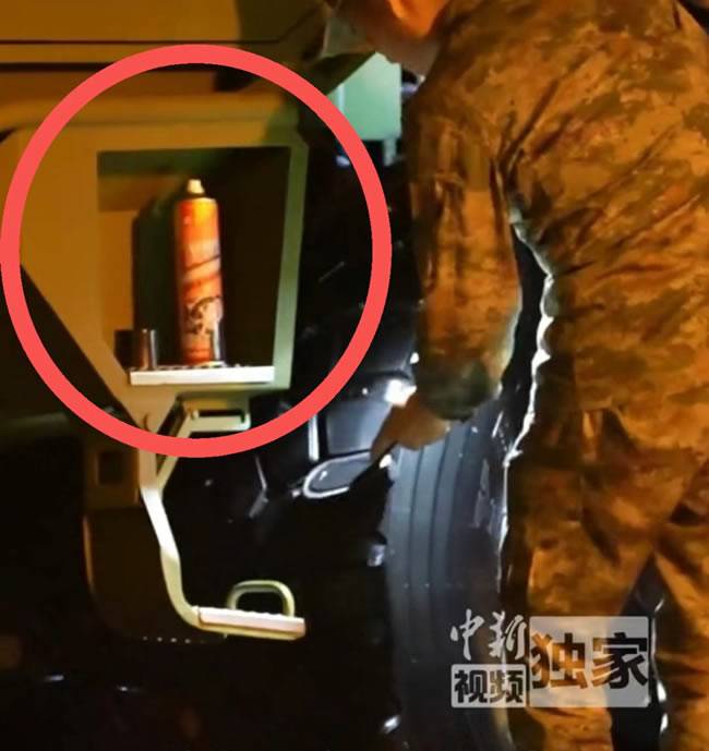 镜头里,受阅官兵正在使用好顺轮胎泡沫光亮剂,为车辆轮胎进行精心护理。