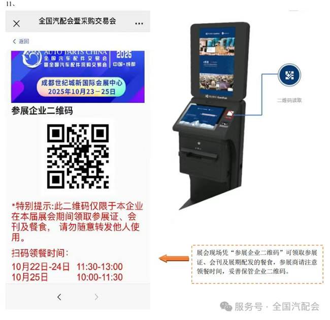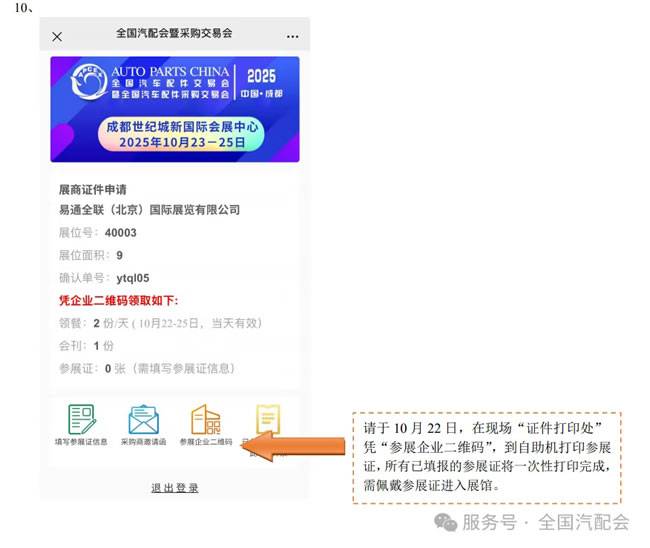 3、参展人员于10月22日在展馆5号馆前“证件打印处”凭企业二维码自助打印参展证件,同时领取卡套、会刊。