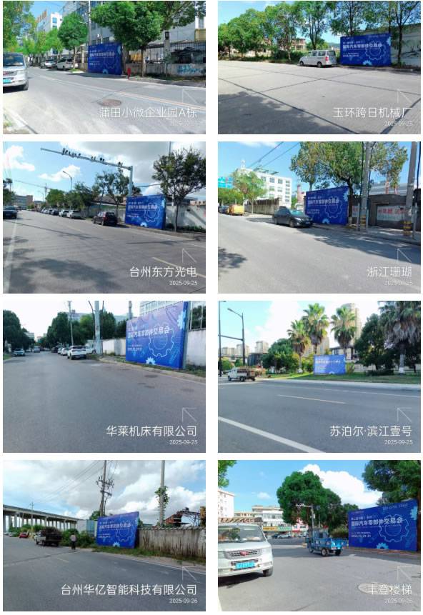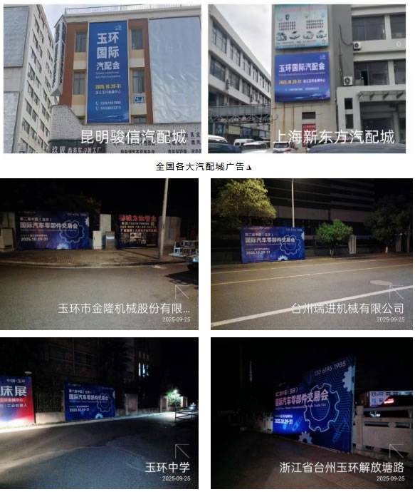 为了深入挖掘潜在客户并提升展会品牌效应,目前,户外广告已硬核亮相!陆续覆盖浙江及长三角地区的汽配城、重点路段、工业园区、产业集群及周边重点城市高铁站,形成全方位的宣传网络。