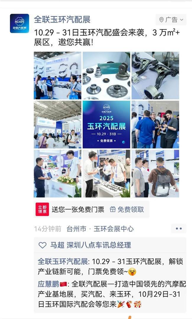 玉环汽配会广告上线!强势霸屏!