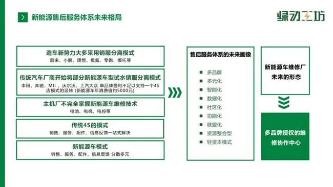 在售后服务体系层面,变革同样深刻。蔚来、小鹏等造车新势力,以及本田、奔驰等部分传统车企,纷纷推行“销服分离”模式,新能源车售后不再局限于单一品牌的4S店体系,而是朝着多品牌、多元化、智能化、轻资本的方向发展,未来“多品牌授权维修协作中心”将成为主流形态。对传统维修厂而言,转型路径逐渐清晰——走“燃油+新能源二合一”的融合之路,以燃油车业务“保基本盘”,通过增设新能源维修专区、升级三电维修技术、配备高压检测设备、培养复合型技工,实现从单一服务向综合服务的跨越。