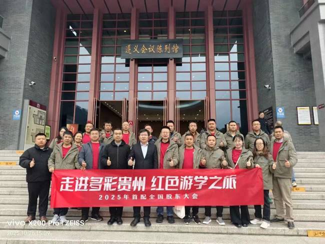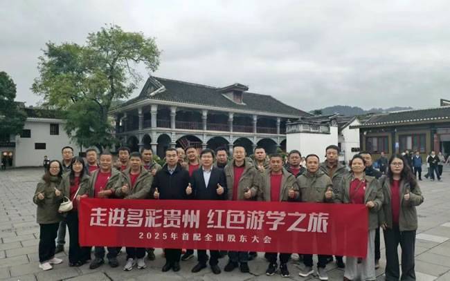 研学之旅中,肆拾玖坊还为首配联盟打造了兼具文化体验与情感联结的专属活动:肆拾玖坊大酒店的拦门酒承载黔式热情,让远道而来的伙伴感受温暖;长桌宴上,黔味佳肴搭配醇厚佳酿,消融陌生距离;夜幕下的篝火晚会,载歌载舞间凝聚联盟向心力。此外,联盟还走进遵义会议旧址,在红色文化中感悟 “坚定信念、团结协作、实事求是” 的精神力量。“革命先辈在困境中坚守信仰、团结奋进的精神,正是联盟发展所需。未来面对行业挑战,我们也要凝心聚力、共克时艰。” 首配联盟负责人说道。