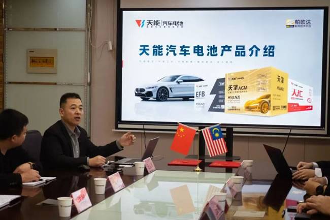 天能汽车电池负责人对该公司一行的再次到访表示热烈欢迎后,海外业务部负责人王元鹏详细的介绍了天能汽车电池的技术研发成果、全产业链优势以及全球化发展战略。他表示,马来西亚及整个东南亚市场是天能全球布局中的重要一环,天能汽车电池对与该公司的合作充满信心与期待。