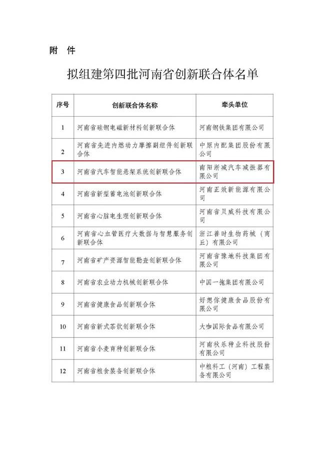 近日,河南省科技厅公示第四批省级创新联合体名单,南阳淅减汽车减振器有限公司牵头申报的“河南省汽车智能悬架系统创新联合体”榜上有名。该联合体为我县获批的首个也是唯一一家省级创新联合体。