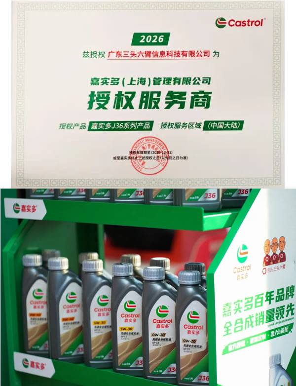 作为中国汽车后市场领军渠道品牌,三头六臂深耕国内各城市、地县市场多年,构建了覆盖全国的汽配供应链网络与成熟的本地化运营体系,具备精准触达终端门店与车主的渠道优势,同时对高品质、差异化的产品有着强烈诉求。而嘉实多作为拥有百年技术积淀的国际润滑油品牌,凭借强大的品牌影响力、领先的研发实力与全球化的品质管控,在高端汽车养护市场占据重要地位。127年的发展历程中,嘉实多不仅是深耕润滑油领域的技术专家,更领航海、陆、空、太空等多领域严苛工况的润滑解决方案研发,彰显品牌硬实力。近年来,嘉实多加速多渠道布局,拓展市场覆盖成为其战略增长的核心板块,亟需依托本地化的渠道网络触达更广泛的终端用户。双方的合作,实现了渠道力、运营力与品牌力、技术力的精准对接,形成双向赋能的合作闭环。