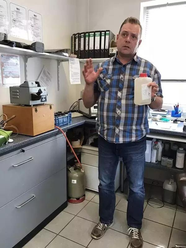 德国锐柯老董事长波曼先生带领参观了锐柯生产车间,在参观过程中向大家介绍了锐柯生产调配工艺和完备的化验设施。