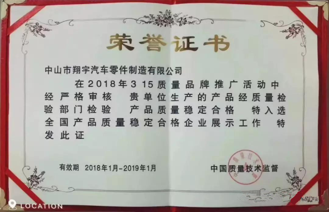 中山市翔宇汽车零件制造有限公司成立于1998年11月1日,前身为湖南航天局1990年投资于广州的军工企业,97年军转民,公司占地2万多平米,现有1200万个滤清器,100万套刹车片的年生产能力,已形成集设计、研发、生产、销售为一体的专业生产汽车滤清器、刹车片的汽车零配件制造企业。其中,刹车片-翔宇卫士与2017年9月12日经广东省质量技术监督局进行了专项监督抽查,结果显示各项指标全部合格。并于2018年3.15质量品牌推广活动中经严格检验后,产品质量稳定合格,现已入选“全国产品质量稳定合格企业”,好产品,更放心!