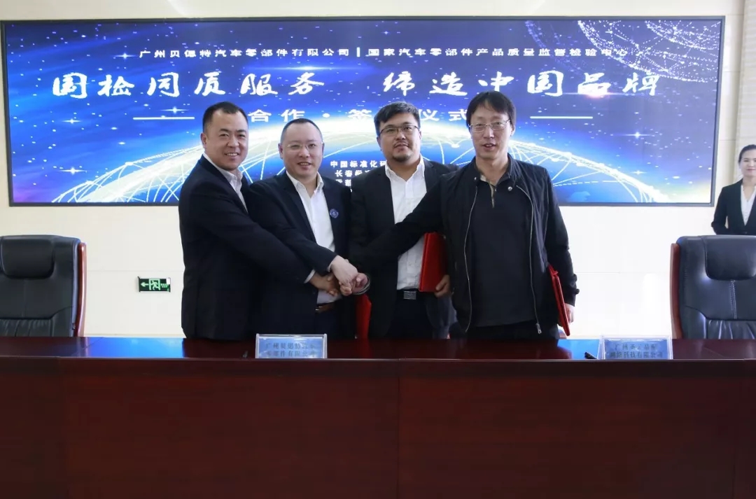 9月26日,广州贝偲特BMTSR汽车零部件有限公司、国家汽车零部件产品质量监督检验中心、长春标准研究院、广州圣云品配网络科技有限公司共同签署合作协议签约仪式暨新闻发布会在长春举行。