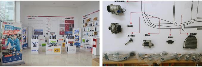 极配一楼大厅,摆放着各类联盟公司埃力克斯自主品牌产品,伦福德底盘件和德国原厂机油是本次奔宝新公司推出的核心产品,原厂配套品质及超高的性价比让所有股东成员对未来的市场推广充满了信心。