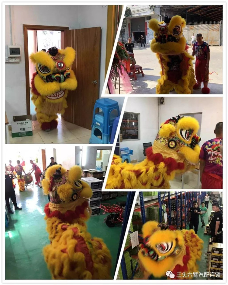 南派舞狮也叫做“醒狮”,起源于广东南海县(现佛山南海区),是驱邪避害的吉祥瑞物,每逢节庆,或有重大活动,必有醒狮助兴,长盛不衰,代代相传。而三头六臂在南海行事,岂能有失大家风范,今天特请得佛山精武龙狮团前来助威。