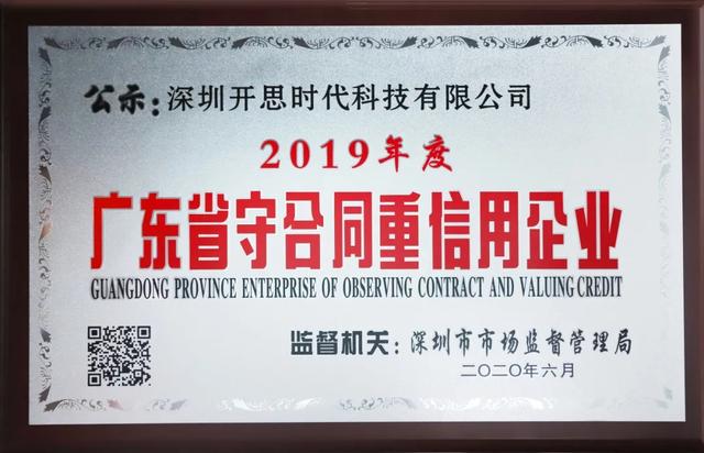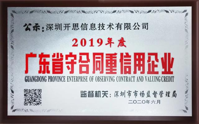近日,深圳开思时代科技有限公司(简称“开思时代”)和深圳开思信息技术有限公司(简称“开思信息”)成功获评2019年度广东省“守合同重信用”企业。