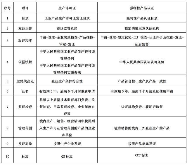 3C认证与生产许可证主要差异
