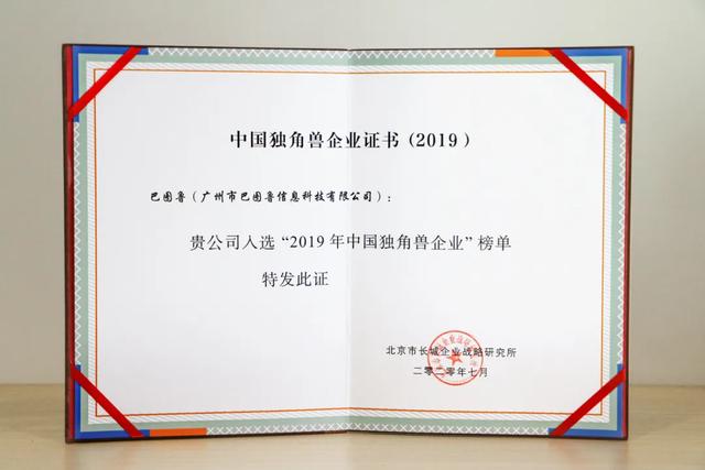 8月11日,2019年广州独角兽企业授牌仪式暨2020年“发现广州独角兽创新企业”启动仪式上,巴图鲁荣膺“2019广州独角兽创新企业榜单”,成为13家独角兽中唯一一家汽车后市场企业。