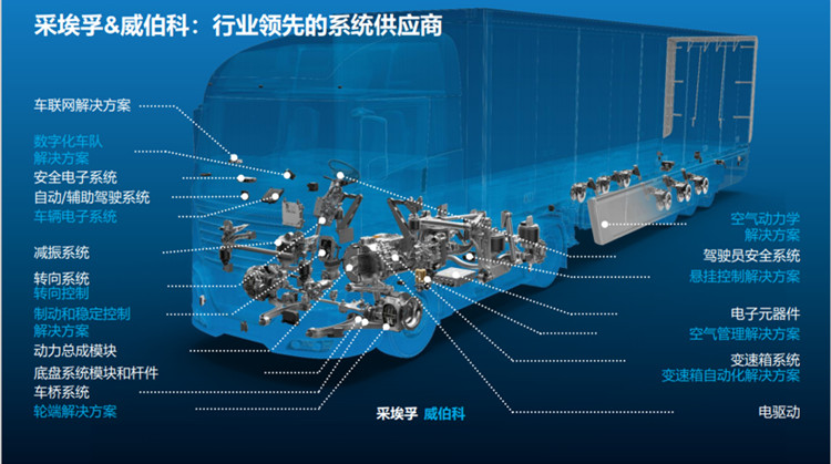 在收购威伯科之后的几个月时间里,双方融合了各自系统能力的新研发项目,并且取得了一定的成果,并于日前发布了四项智能解决方案。商用车技术事业部负责人Andreas Moser补充道,“我们重点关注创新技术项目,比如燃油经济型卡车-挂车样车的开发,它兼具轻量化和气动设计,为电动化的战略留出足够的底盘设计空间。”