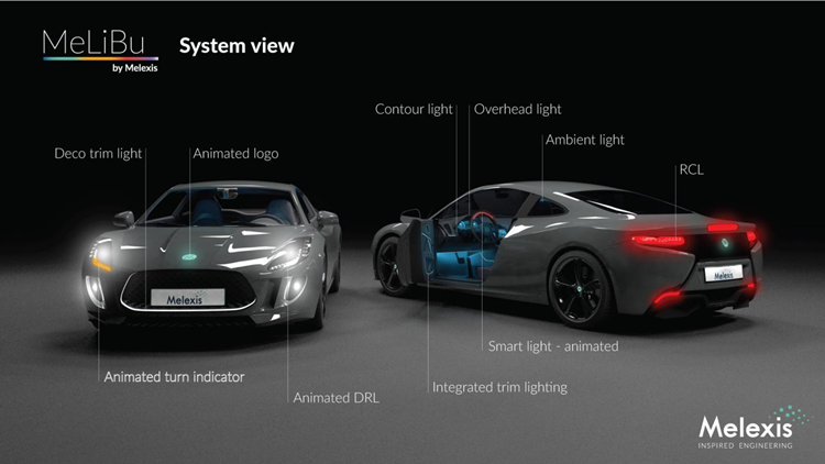 Melexis 在开发基于 LIN 的 LED 汽车系统方面具有丰富经验。为了应对智能照明挑战,Melexis 开发了 Melexis 光导总线 (MeLiBu™)。该光导总线综合了 LIN 和 CAN 的优势:兼具 LIN 易于使用的可扩展协议和硬件架构与 CAN 的速度和可靠通信系统。高速、可靠的通信系统专为具有大量 LED、动态效果、复杂性和动态范围高的应用设计。这是一个免许可证系统,基于现有的 CAN-FD 物理层和自同步的 UART 通信。另外,MeLiBu™ 可确保与不同级别供应商的 LED 系统实现无缝集成,适用于 ASIL-B 等级以下的安全关键型应用。
