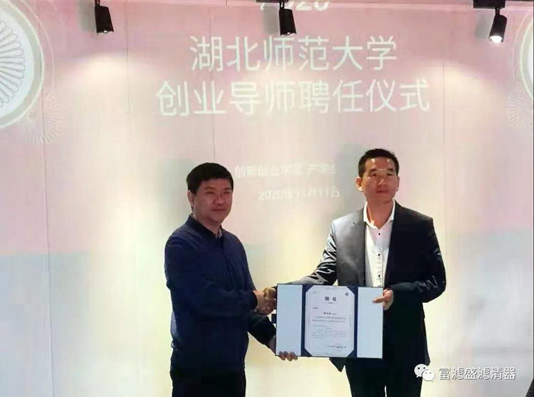 11月11日上午,富滤盛集团、富滤盛滤清器董事长傅锦林、晋级教育创始人窦昆、深圳海天力电子商务有限公司董事长彭从雁三位校友,应湖北师范大学相关领导的邀请回到学校,在校院领导的陪同下,参观了创新创业学院的学生创新创业中心后,参加了在创新创业学院荔枝空间会议室举行的2020年创业导师聘任仪式。