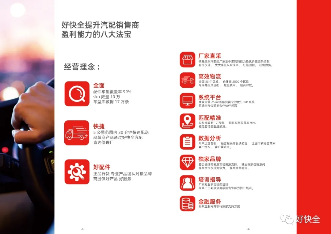 具体而言,合作伙伴加入“好快全汽配”合作体系之后,将享受活动支持、专人辅导等多方支持。使用智慧系统和大数据平台辅助,可从进货、销售、存库系统、资金管理、客户管理,全程系统智能化操作直接运营汽配门店。