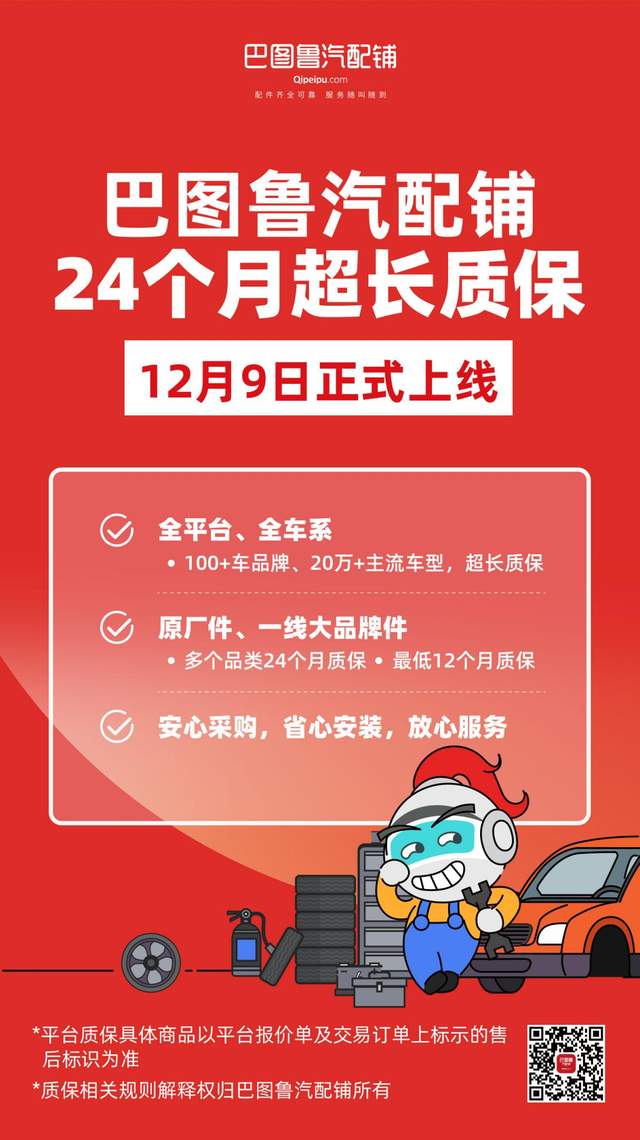 12月9日,巴图鲁汽配旗下全车件交易服务平台"汽配铺"在行业内首推24个月超长质保,对客户提供超过行业标准的质保服务。该服务覆盖全平台100多个车品牌,20多万个主流车型,近千万SKU。具体来说所有车品牌,多个品类24个月质保,原厂和一线大品牌质保最低12个月起,且该项服务对平台所有客户开放。