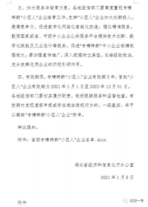 近日,摩擦一号制动科技(仙桃)有限公司在“湖北省专精特新小巨人”评选中荣膺湖北省专精特新“小巨人”企业。