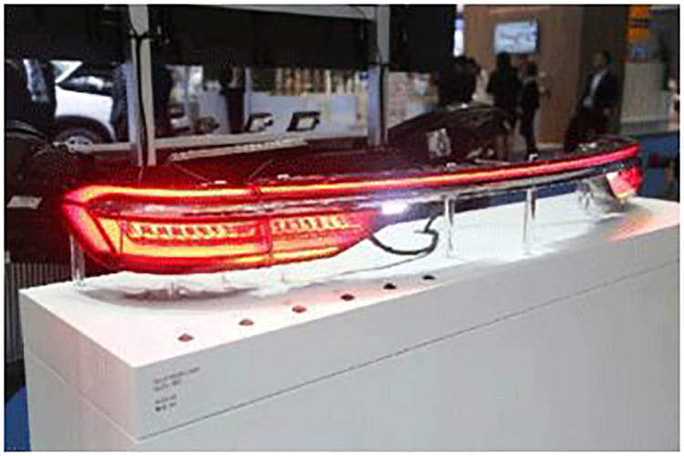展会现场,海拉的明星产品——新款奥迪A8前灯和尾灯系统受到了广泛关注。前照灯系统包含了最新的矩阵LED照明,外加高性能激光模块用于远光辅助,X造型灯带和蓝色背光照明使它更具辨识度,其前置摄像头主要为控制电脑提供基础路面数据,从而更好地实现不同环境下智能照明。尾灯系统则首次采用了OLED材料,通过有机发光半导体材料来提高照明精度,OLED发光区域可以细分成不同的区段进行独立控制,更吸引眼球的是,该款尾灯具有智能控制功能,当驾驶者下车锁门后,尾灯会呈现独特的动态效果,欢送司机离开,充分体现了智能汽车照明是一种语言。