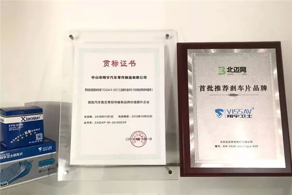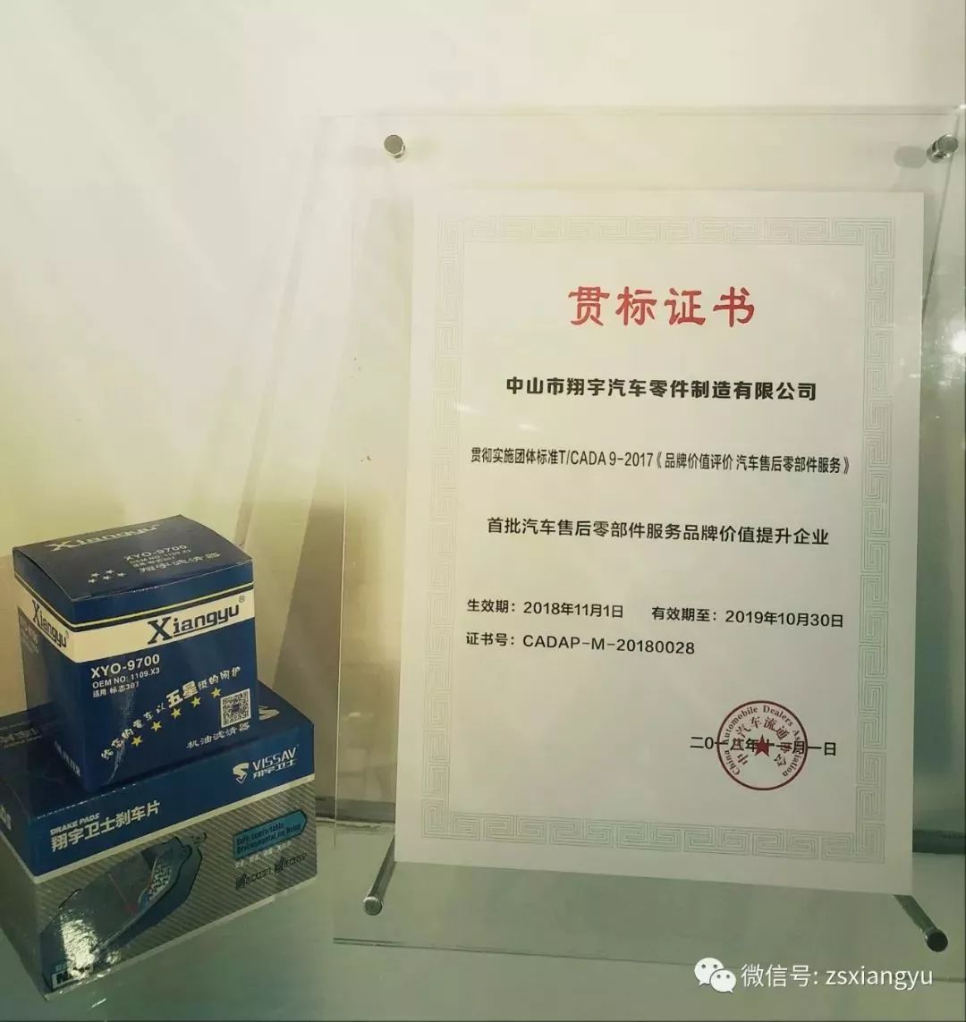 翔宇公司凭借二十年工厂经验以及雄厚的企业团队实力荣获国家标准证书,荣获“首批汽车售后零部件服务品牌价值提升企业”及贯标证书!