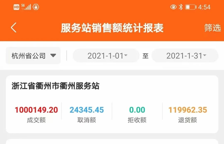 2021年的第一个月,快准车服衢州服务站全车件销售额突破百万大关。