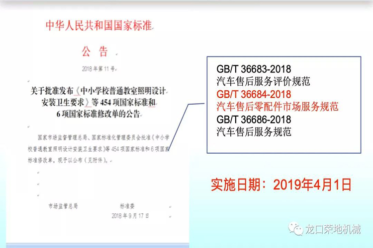 GB/T 36684-2018《汽车售后零部件市场服务规范》公告