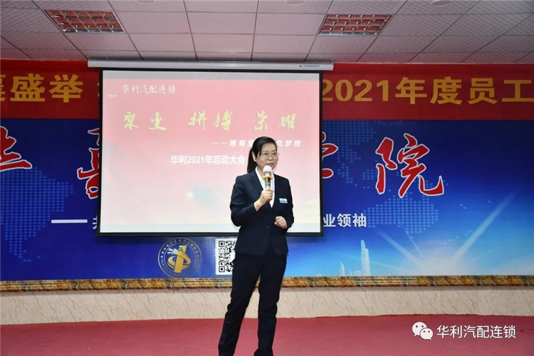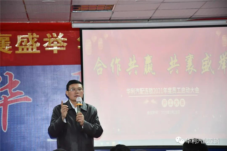 2021年02月23日上午,以“合作共赢,共襄盛举”为主题的华利汽配连锁2021年度启动大会在公司总部二楼商学院成功召开,公司中高层领导及骨干员工参与了大会,见证了公司的发展壮大历程及重大改革方向。