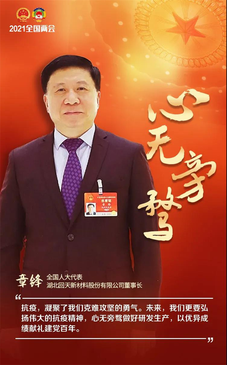 2021年3月,全国两会在北京拉开大幕。全国人大代表、回天新材董事长章锋先生赴京参加十三届全国人大四次会议,听取并审议政府工作报告,认真履行人大代表参政议政的职能,积极建言献策,参与国是。