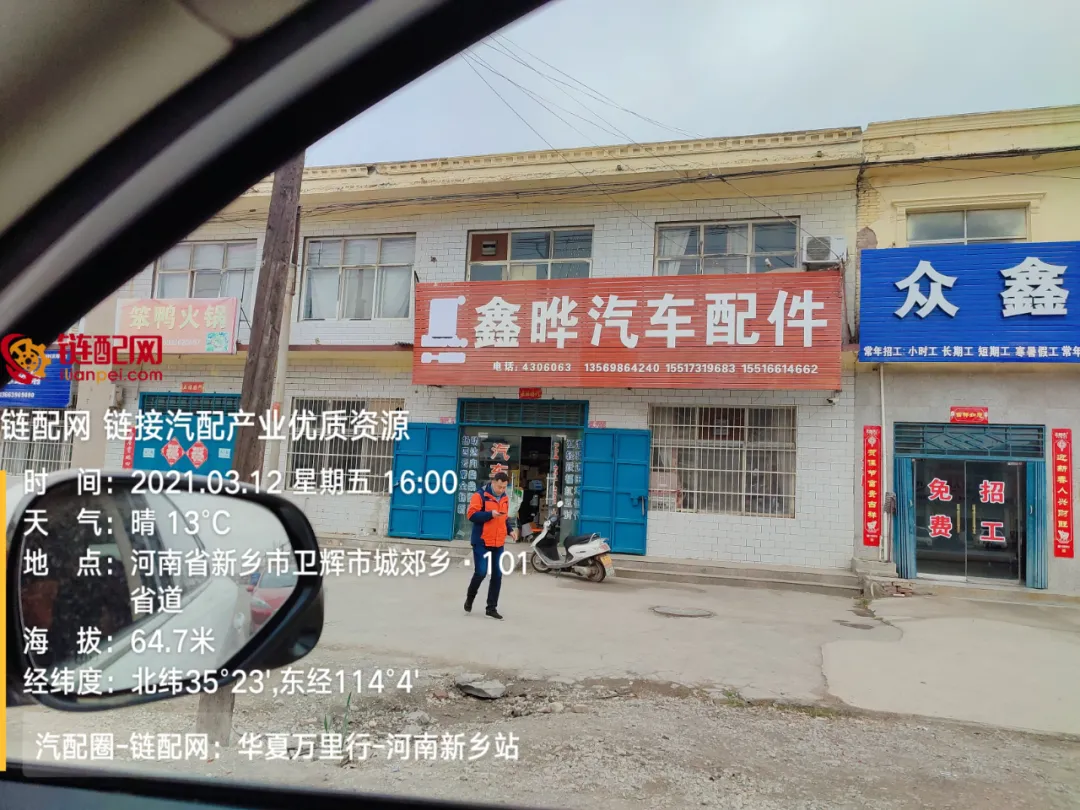 傍晚时分,小分队到达辉县市,扫街发行后统计得出,辉县市做汽配汽修服务的有70多家,集中在苏门大道与清晖路交叉路口附近的约有50多家,太行大道两侧有20多家,主做汽车维修、轮胎和装饰。做易损件的有5家,分别是三头六臂、荣挣汽配和天弘汽配,都开在苏门大道两旁,金浪屿汽配大全在建材市场里,快准车服在太行大道。
