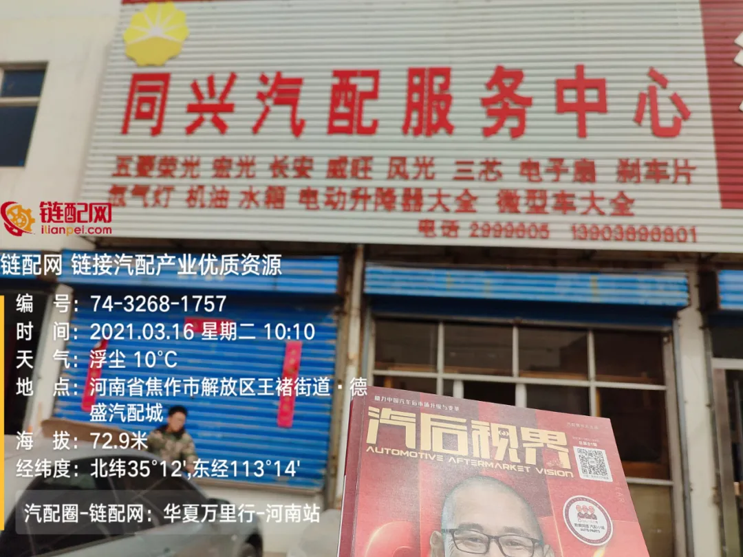 焦作市总结:焦作市专门做易损件的共有10家,分别是金海业汽配、金麒麟汽配、花园汽配、鑫诚汽配、大众大汽配、星誉汽配、同兴汽配、鸿通汽配、焦作光明汽配、骆驼蓄电池(焦作市总代理)。做全车件的有3家,分别是焦作光明汽配、星誉汽配与大众大汽配。德盛汽配城大概有180家商户,汽车装饰占60%、维修保养门店占30%。