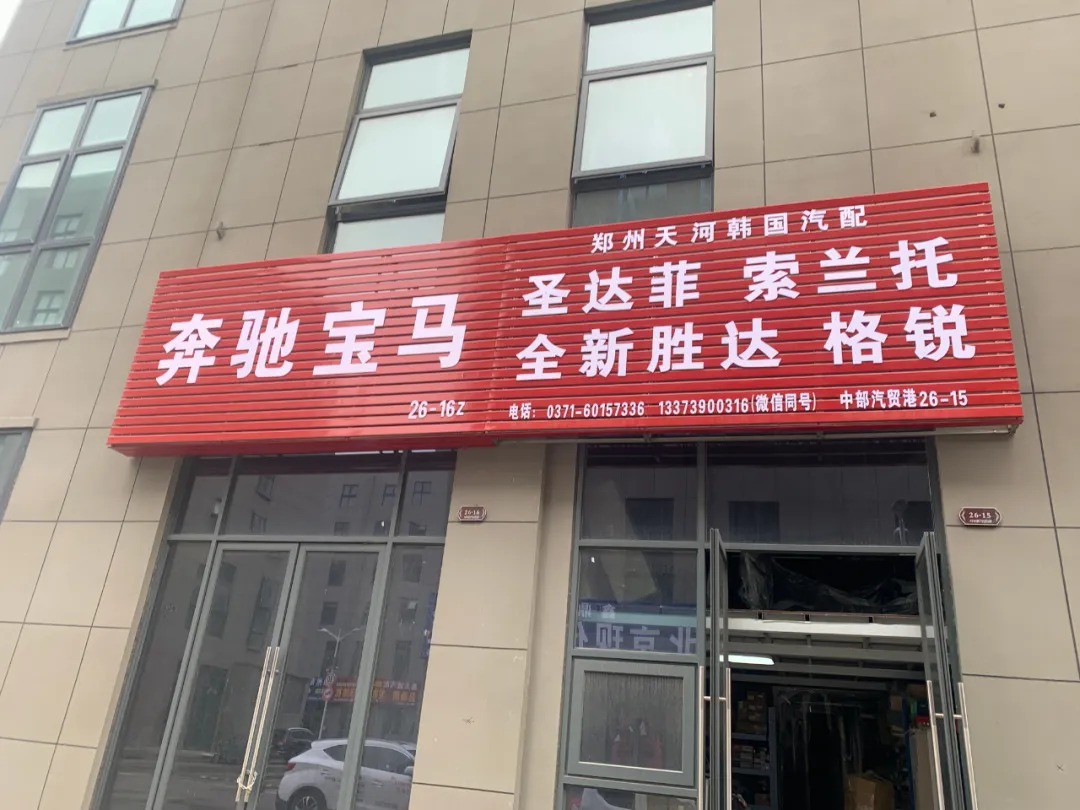 中牟县中部汽贸港约有300多家商家,楼层分为3层,楼上基本是为仓库。其中,商用车配件门店占35%,大车油品和刹车片占10%,乘用车全车件和电喷系统占40%,易损件商家占据15%,汽车维修门店有5家。