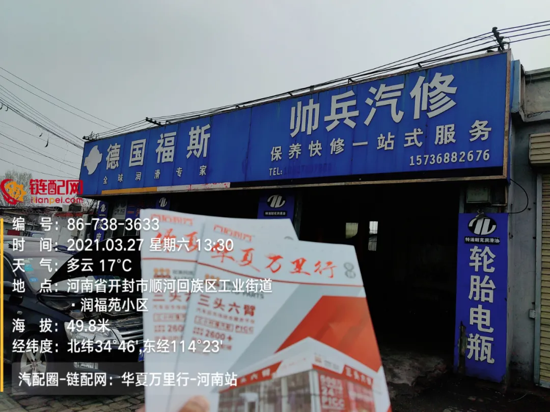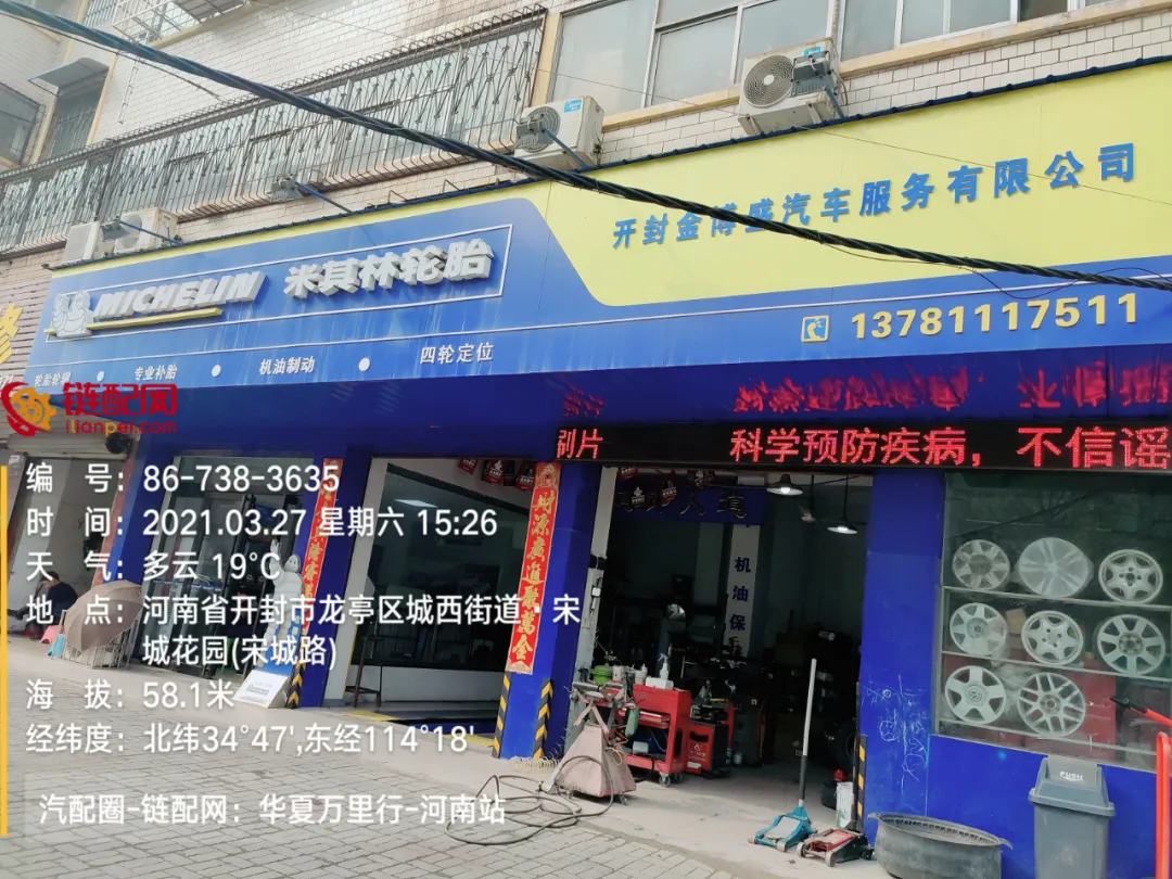 开封市专做易损件的有14家,分别是全好汽配、快准车服(祥府区服务站)、骆驼蓄电池机油汽配、路遥汽配、好兄弟汽配、国峰汽车配件、万洋电池、联诚汽配、信义汽配、路祥汽配、合盛通商贸、李涛汽配、速力汽配,毅辰汽配。专做轮胎的有10家门店。