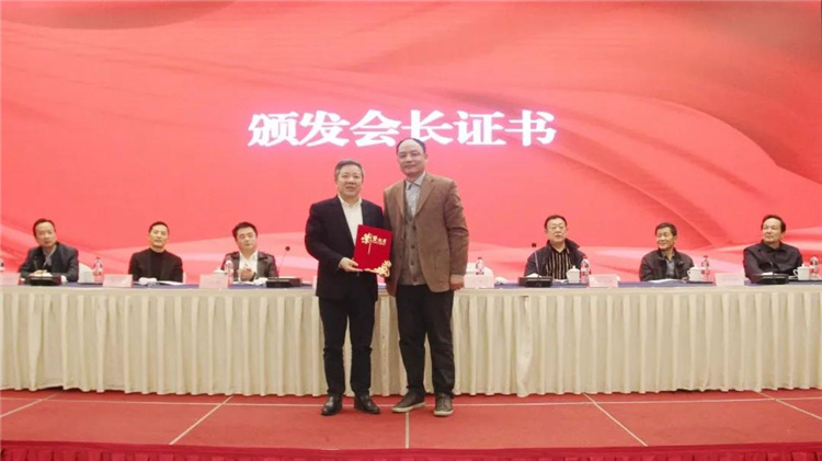 浙江省经信厅一级巡视员杜华红为张晓平董事长颁发会长证书