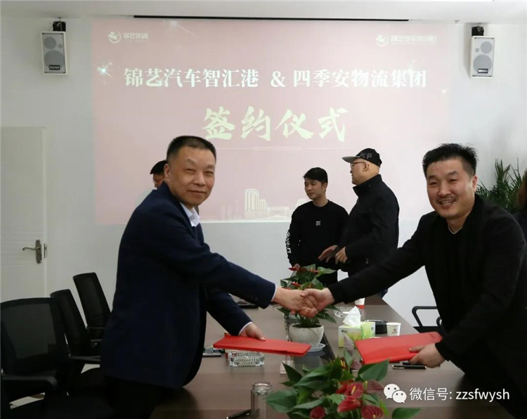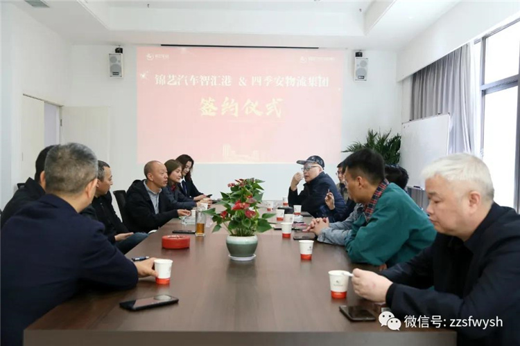 2021年4月17日上午,锦艺汽车智汇港与四季安物流集团在锦艺汽车智汇港六楼会议室举行签约仪式。郑州市汽车服务业商会会长、锦艺汽车智汇港总经理张东方、商会副会长:四季安物流集团副总经理王志刚、郑州迅达空调汽车配件有限公司总经理乔金波、郑州永丰汽车配件有限公司总经理唐小国、河南桑必达汽车配件有限公司总经理韩建英、郑州新和平汽车配件有限公司总经理姜峰,河南太平洋汽配有限公司总经理贾芳芳、河南楚天汽配商行总经理荆四保、郑州富丽纳商贸有限公司总经理荆承龙、广州景丰汽配梁总、四季安物流集团公司业务经理陈锋、西区负责人李辉、招商运营总监葛乃兵、商会秘书长桑永梅等人出席此次签约仪式并进行座谈。