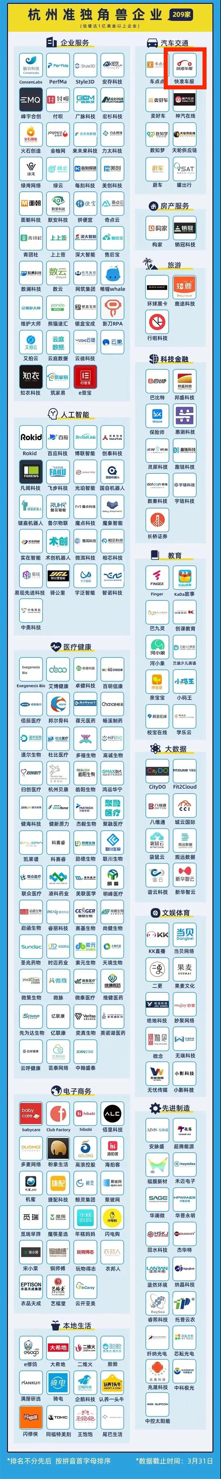 4月28日,杭州市人民政府、民建浙江省委、中国投资发展促进会共同主办的第五届万物生长大会于杭州国际博览中心隆重开幕,会上,杭州市创投协会联合微链共同发布《2021杭州独角兽&准独角兽企业榜单》。截至2021年3月31日,杭州共有独角兽企业(估值不少于10亿美元)37家,准独角兽企业(估值不少于1亿美元)209家。