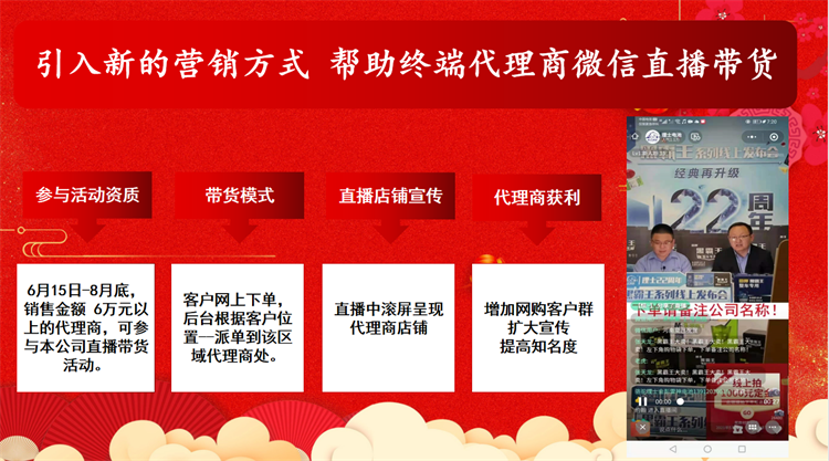 除此之外,工作人员还为在座终端客户解惑,讲解了直播带货等问题,让客户对新引入的营销方式有更深刻的了解,为终端客户开辟多元化销售渠道的机会指明方向。