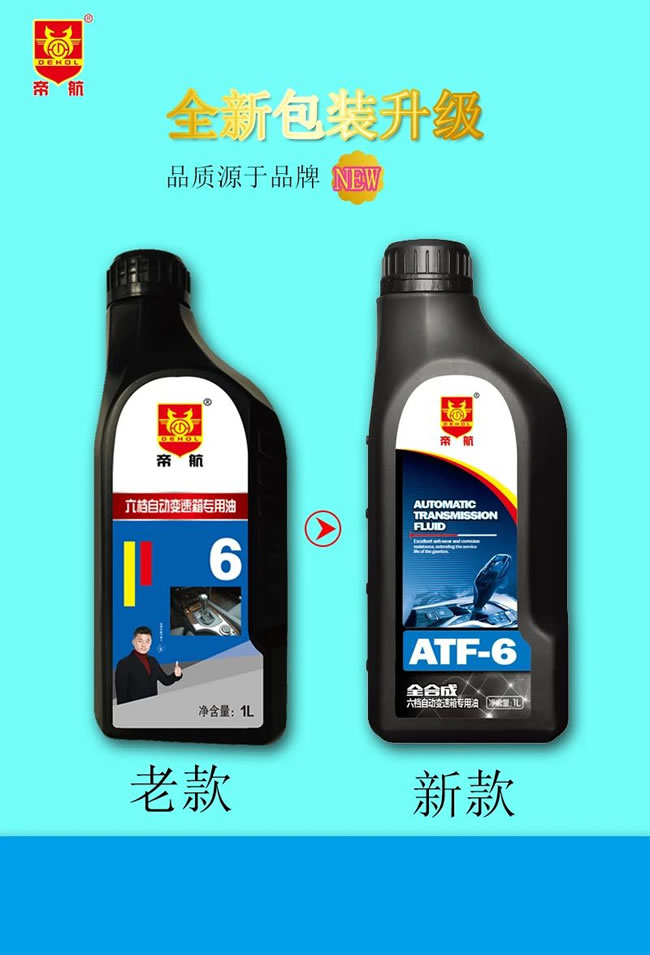 帝航自动变速箱油包装外观升级后,新款包装将陆续上市,现有的老包装也在陆续销售,售完即止,新老包装产品同质同量,请放心使用。感谢您的支持与信赖,帝航股份将不负众望,为您持续带来更优质的产品。