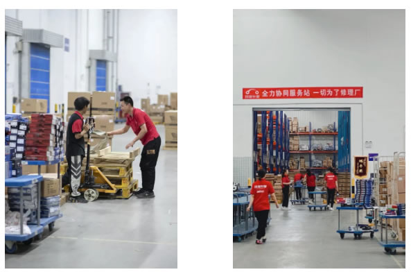 正是因为有他们的默默付出,目前快准车服杭州仓(占地面积15000平)的月作业量达3万单以上,月发运包裹能力超15万件,月均人效近50万,浙江省95%以上区域实现次晨达。并通过WMS系统、TMS系统和仓配运营管理驾驶舱,实现从服务站订单下达到订单交付端到端全链路数据化和可视化,大幅改善和提升了供应链运营效率。