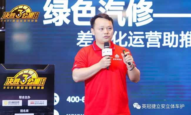 2021年6月29日,由汽车服务世界主办的“决胜三公里”精益运营特训营在上海成功举办,英冠润滑油受邀参加活动。英冠润滑油执行董事助理易国强先生发表了《绿色汽修,除碳联盟——差异化运营助推业绩倍增》的主题演讲,就绿色汽修理念、项目、服务等内容进行了充分的交流与分享,就如何将绿色项目落地实施、高效执行进行了深入的剖析,输出的都是落地实用的干货,只为全面提升终端竞争力和盈利能力。