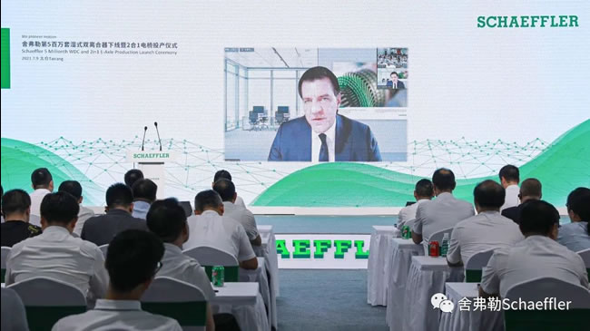 舍弗勒集团电驱动事业部总裁约亨·施罗德博士通过连线的方式致辞,强调集团对中国市场及客户的重视,以及舍弗勒致力于成为电驱动行业技术领导者的承诺