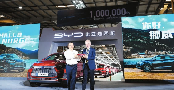 在第100万辆新能源汽车下线仪式上,王传福向购买了第100万辆比亚迪汽车的幸运车主交付了汉EV。与此同时,在挪威王国驻华大使馆商务参赞的见证下,比亚迪宣布,挪威将成为其进入欧洲乘用车市场的首站,计划在年内向挪威交付1500辆唐EV,首批100辆将于本月底发运,这将标志着比亚迪国际化战略的提速,新能源乘用车业务将正式布局欧洲市场,开启电动化出行新征程。