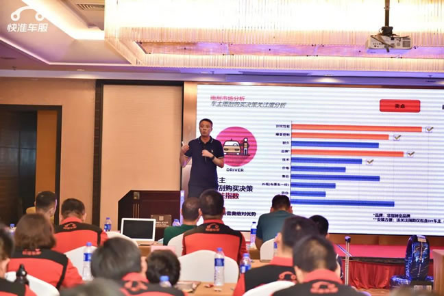 供应商高级总监盛铁军:未来快准的产品一定是售前、售中、售后全关联的,目前我们已经在不断联合供应商,提供更具市场竞争力的优势产品以及配套服务,包括大家需要的一对一培训,甚至还可以安排专人前期帮你们做售出指导,带你们去修理厂跑业务……势必要把整个福建地区所有的服务站的产品力做起来。