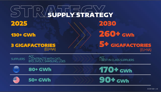 对于电动汽车来说,电池的重要性不言而喻。Stellantis集团的电池采购目标为:确保到2025年电池储备超过130 GWh,到2030年超过260 GWh。为此,该集团决定在欧洲和北美组建五家电池“超级工厂”。