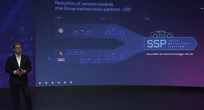 在这场全球直播中,包括迪斯在内的大众集团高管花了大量的篇幅介绍其下一代机电一体化平台——SSP(可扩展系统平台)。