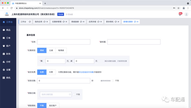 丰富的个性化配置满足不同企业对于营销优惠券的需求: