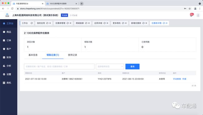 优惠券管理:已经创建的优惠券管理和领取记录查询