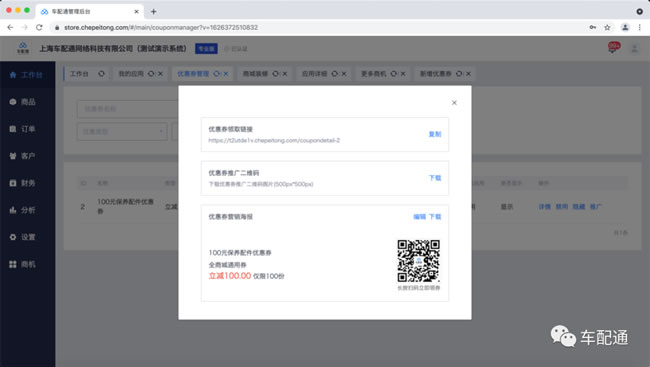 每张优惠券都可以通过系统提供的推广方式进行相关推广