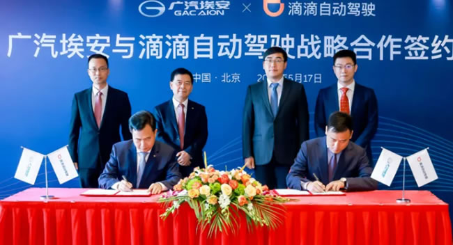 5月17日,广汽埃安宣布与滴滴旗下自动驾驶公司达成战略合作(图源:广汽集团)